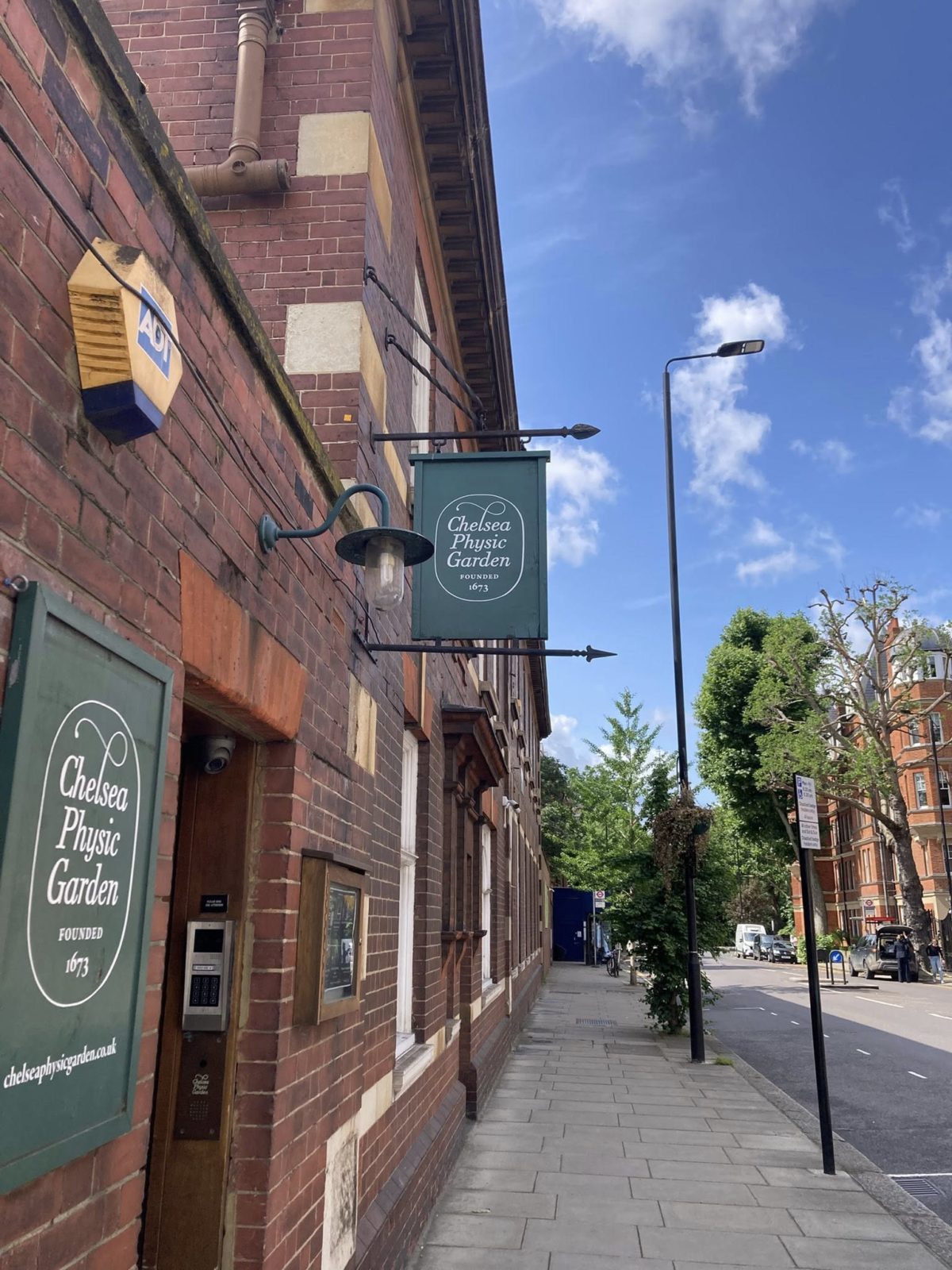 チェルシー薬草園の裏門。メインゲートより、こちらの雰囲気の方が趣があって素敵だった