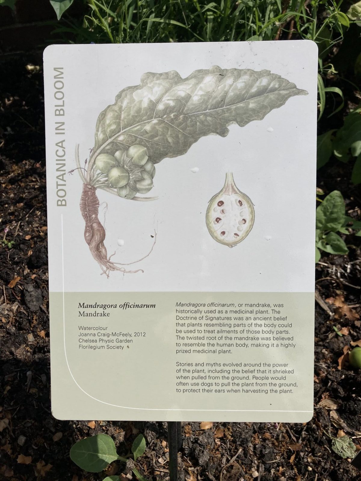 マンドラゴラの説明。植物全体の絵が嬉しい。根っこの部分も良く分かる。